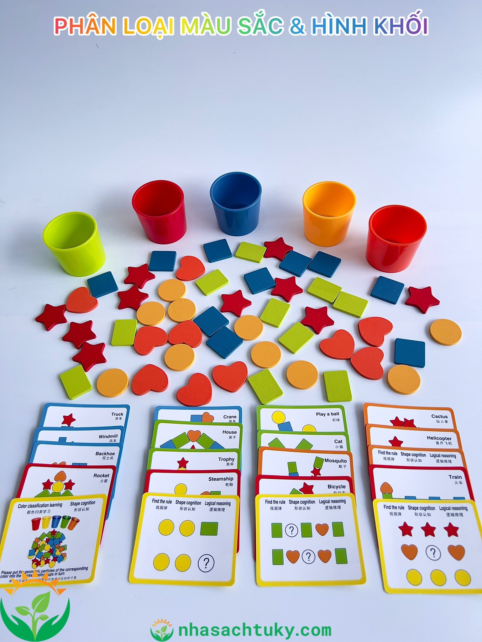 ĐỒ CHƠI MONTESSORI PHÂN LOẠI MÀU SẮC & HÌNH KHỐI BẰNG GỖ ![]()