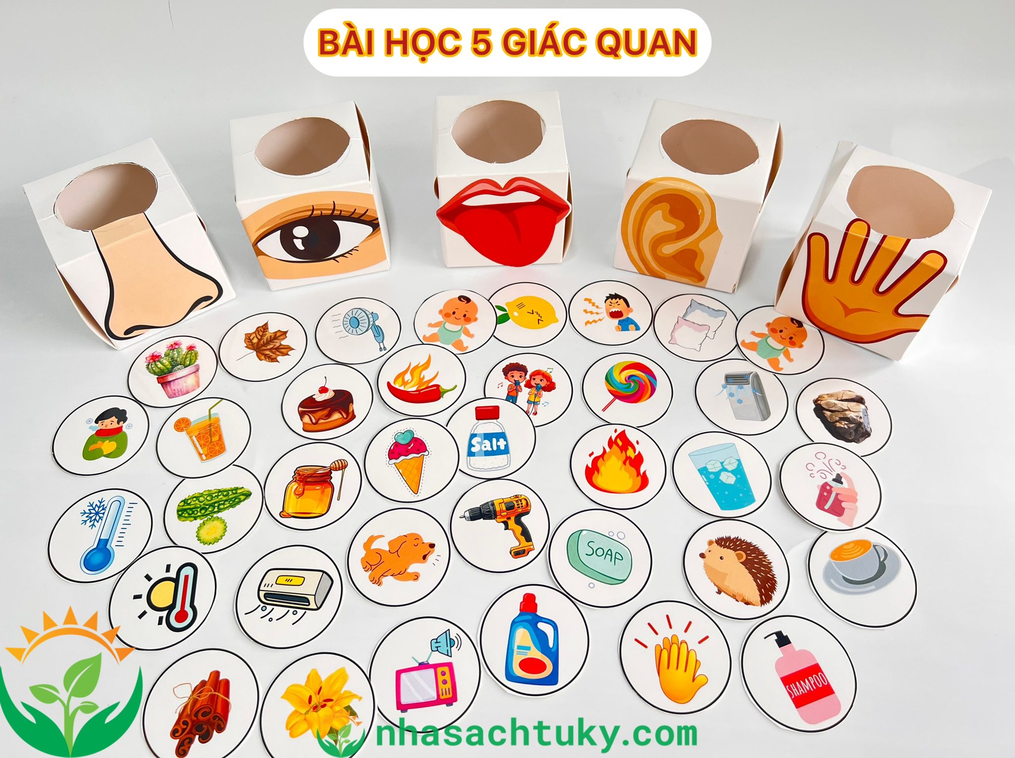 - 5 hộp mô phỏng Mắt – Tai – Mũi – Lưỡi – Tay.