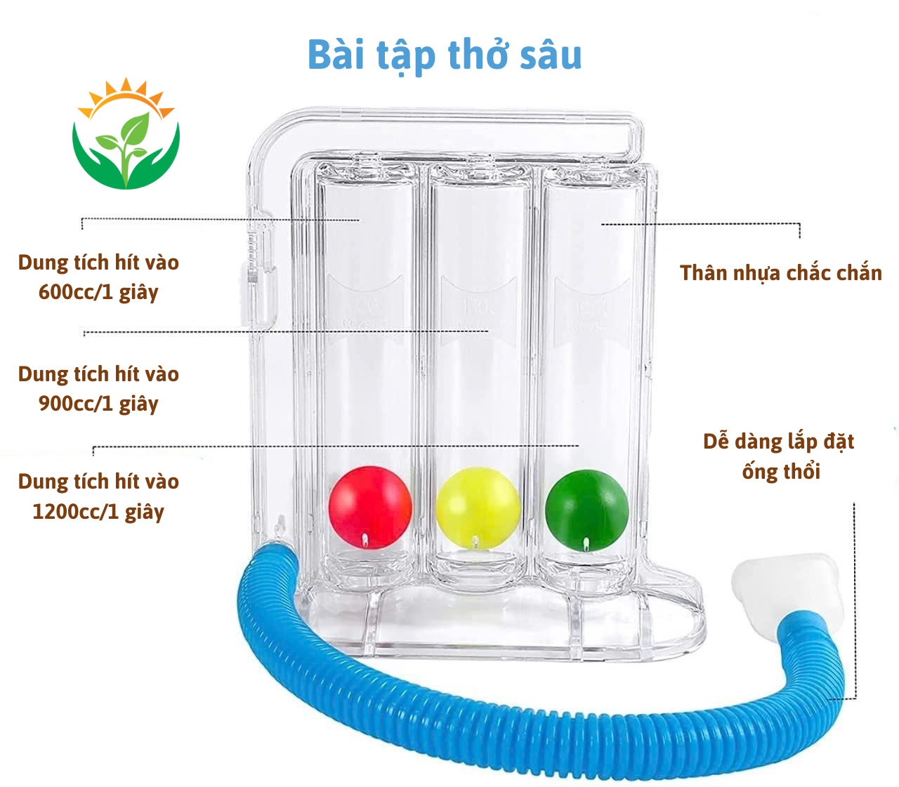 Đây là trợ thủ nhỏ cực hữu ích cho con: Dụng cụ luyện hơi 3 bóng – giúp bé rèn khả năng hít sâu, giữ hơi và thở ra đúng cách.